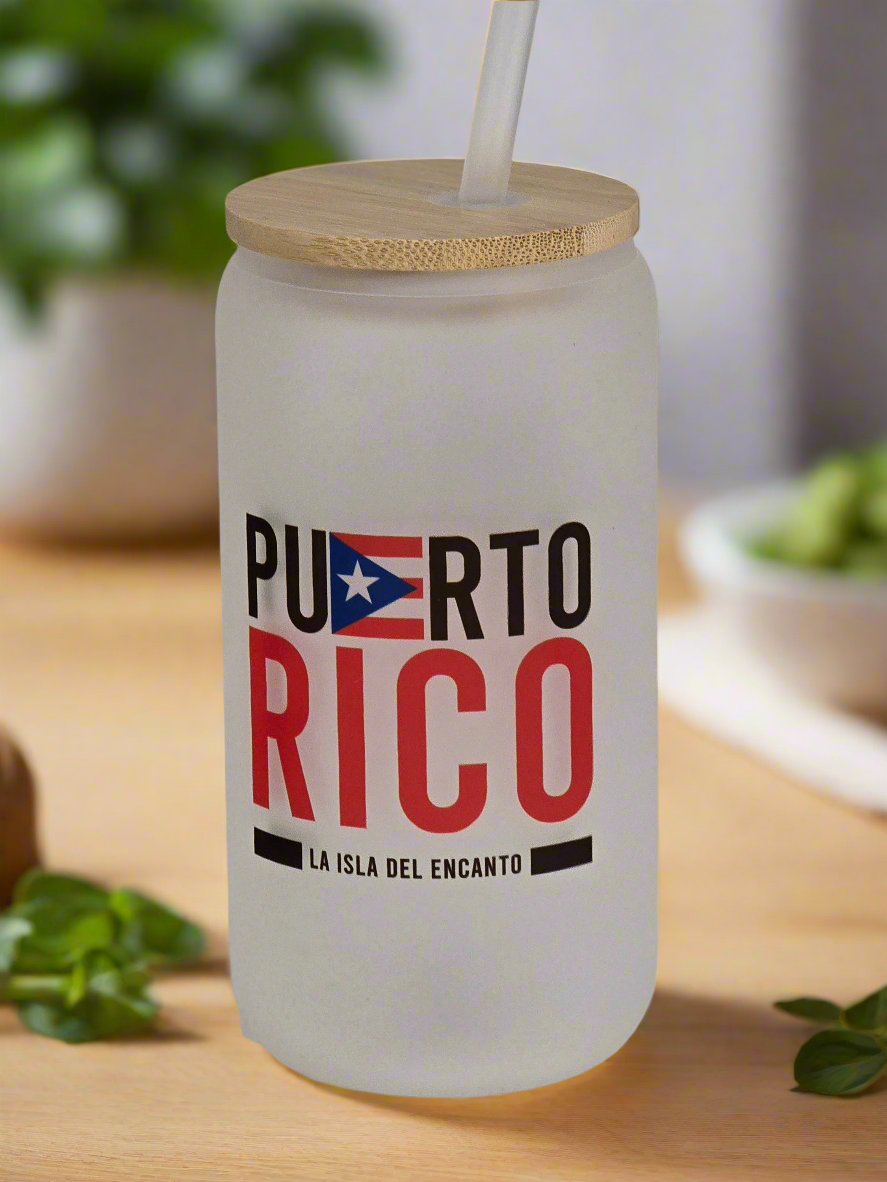 Sip your favorite drink in style with this vibrant, 16 oz frosted glass tumbler celebrating Puerto Rican pride. This can-shaped glass is the perfect way to enjoy your iced coffee, juice, or any beverage while showcasing your love for "La Isla del Encanto."